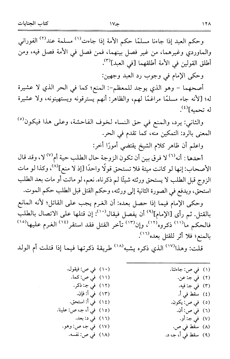 وحكم العبد إذا جاءنا مسلما حكم الأمة إذا جاءت مسلمة عند الفوراني والماوردي وغيرهما، من غير فصل بينهما، فمن فصل في الأمة فصل فيه، ومن أطلق القولين في الأمة أطلقهما [في العبد].