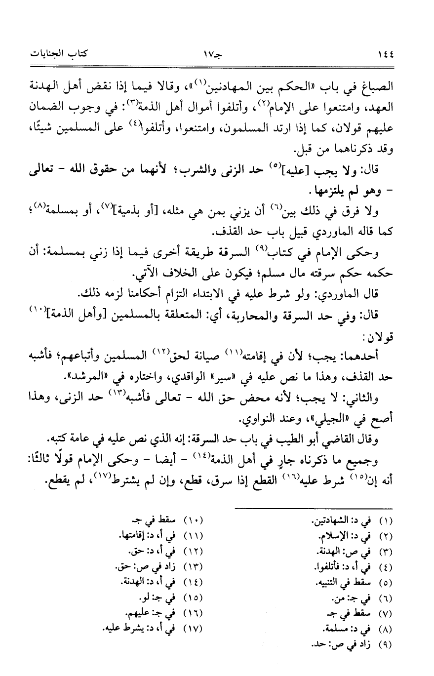 قال: وفي حد السرقة والمحاربة؛ أي: المتعلقة بالمسلمين [وأهل الذمة] قولان: