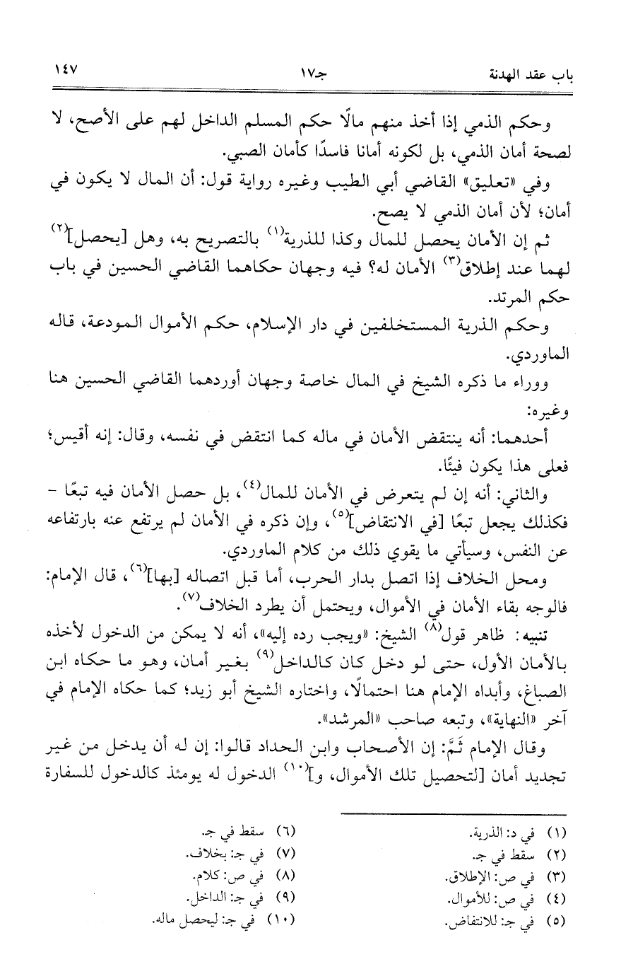 والثاني: أنه إن لم يتعرض في الأمان للمال، بل حصل الأمان فيه تبعا – فكذلك يجعل تبعا [في الانتقاض]، وإن ذكره في الأمان لم يرتفع عنه بارتفاعه عن النفس، وسيأتي ما يقوي ذلك من كلام الماوردي.