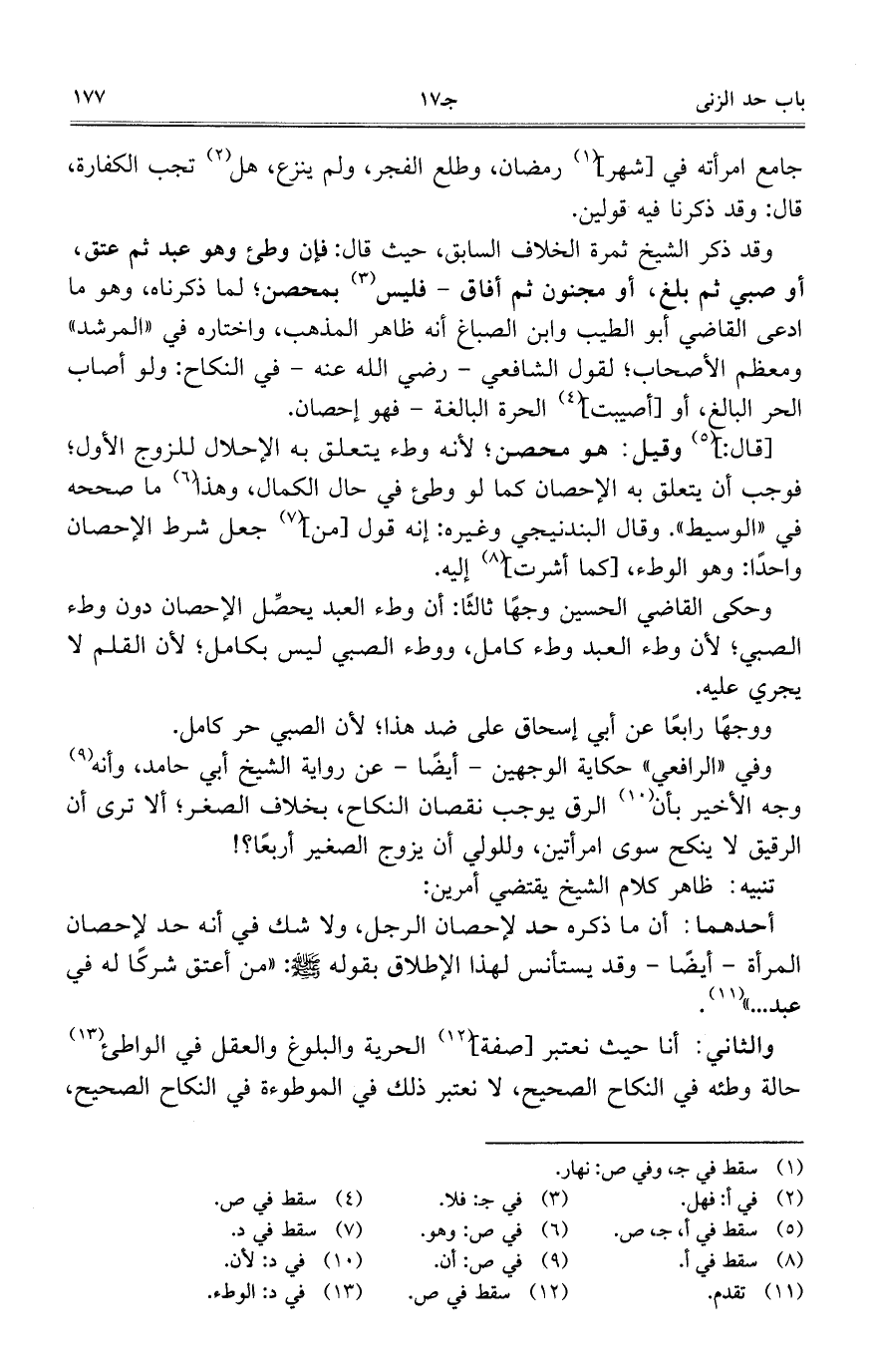 أحدهما: أن ما ذكره حد لإحصان الرجل، ولا شك في أنه حد لإحصان المرأة – أيضا – وقد يستأنس لهذا الإطلاق بقوله صلى الله عليه وسلم: "من أعتق شركا له في عبد ... ".