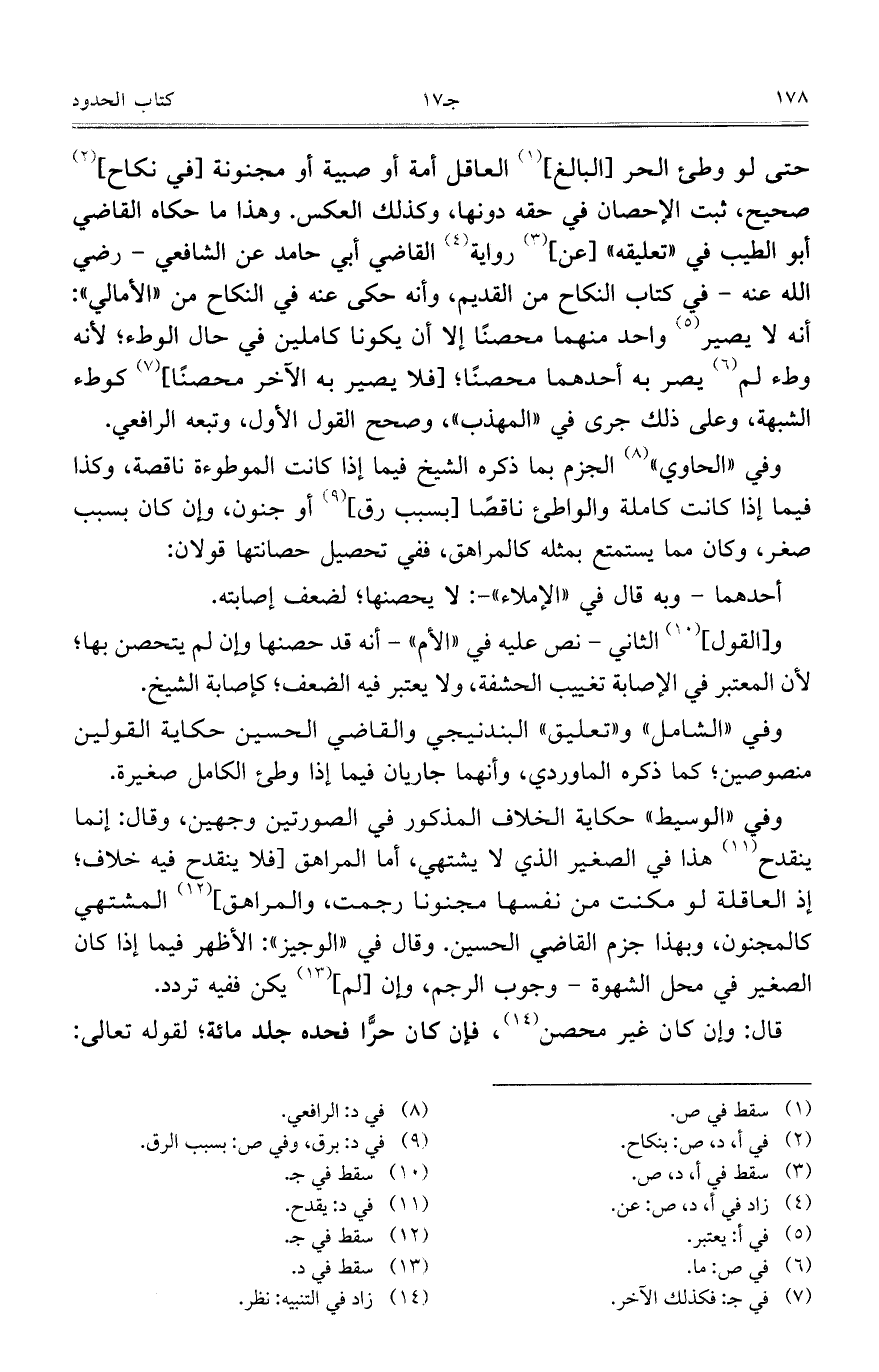 وفي "الحاوي" الجزم بما ذكره الشيخ فيما إذا كانت الموطوءة ناقصة، وكذا فيما إذا كانت كاملة والواطئ ناقصا [بسبب رق] أو جنون، وإن كان بسبب صغر، وكان مما يستمتع بمثله كالمراهق، ففي تحصيل حصانتها قولان: