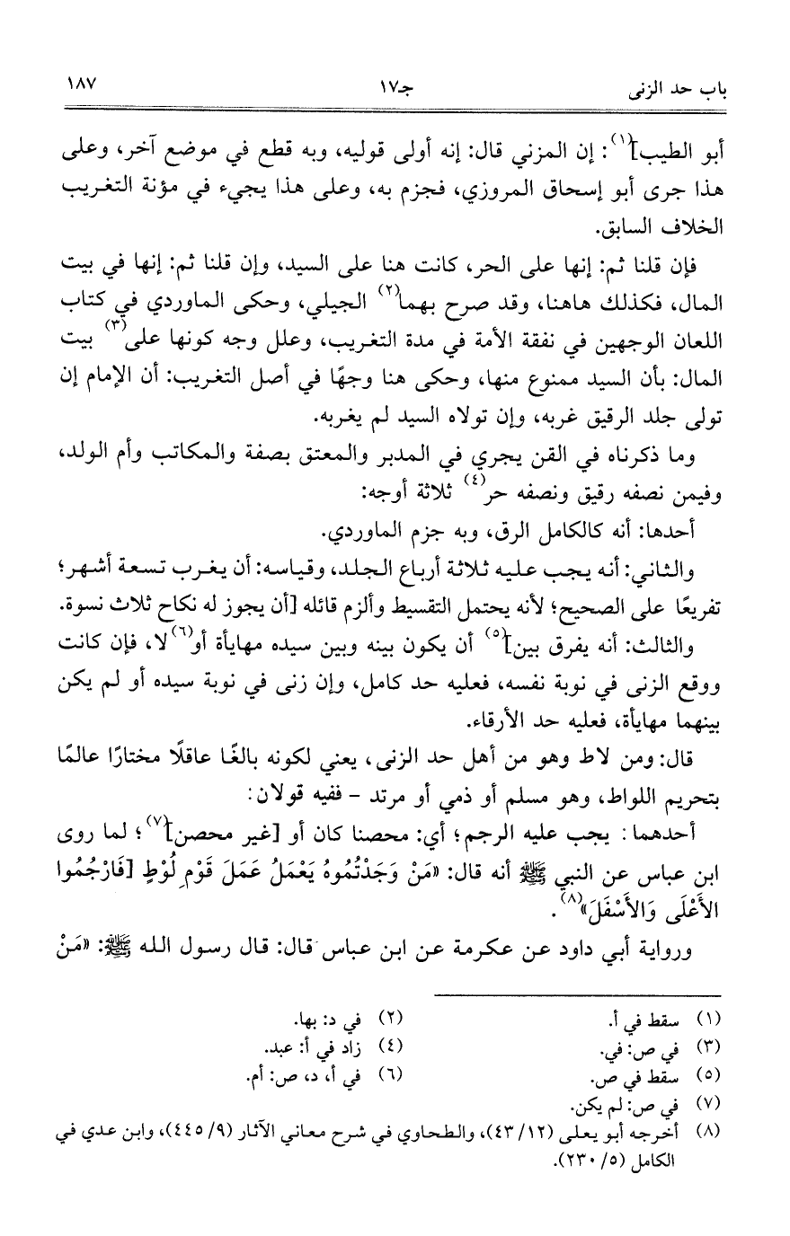 أبو الطيب]: إن المزني قال: إنه أولى قوليه، وبه قطع في موضع آخر، وعلى هذا جرى أبو إسحاق المروزي، فجرم به، وعلى هذا يجيء في مؤنة التغريب الخلاف السابق.
