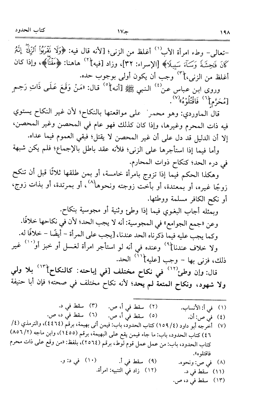 - تعالى - وطء امرأة الأب أغلظ من الزنى؛ [لأنه قال فيه: {ولا تقربوا الزنى إنه كان فاحشة وساء سبيلا} [الإسراء: 32]، وزاد [فيه] هاهنا: {مقتا}، وإذا كان أغلظ من الزنى،] وجب أن يكون أولى بوجوب حده.