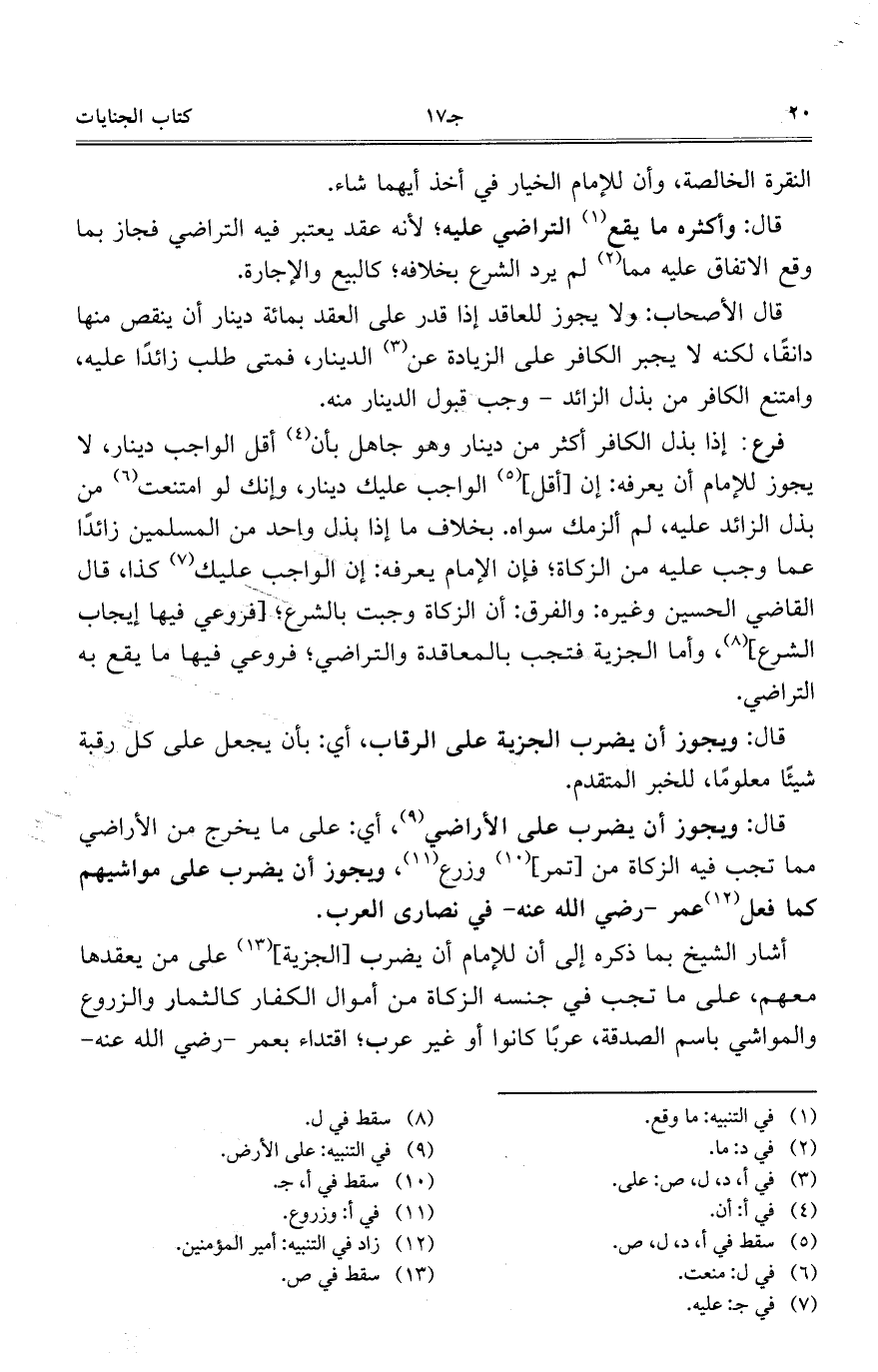 أشار الشيخ بما ذكره إلى أن للإمام أن يضرب [الجزية] على من يعقدها معهم، على ما تجب في جنسه الزكاة من أموال الكفار كالثمار والزروع والمواشي باسم الصدقة، عربا كانوا أو غير عرب؛ اقتداء بعمر – رضي الله عنه –