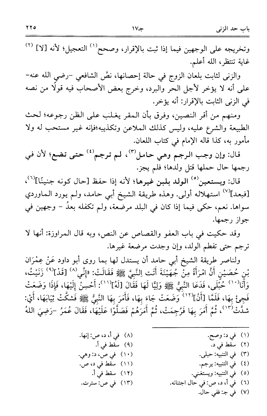 والزنى لثابت بلعان الزوج في حالة إحصانها، نص الشافعي – رضي الله عنه – على أنه لا يؤخر لأجل الحر والبرد، وخرج بعض الأصحاب فيه قولا من نصه في الزنى الثابت بالإقرار: أنه يؤخر.