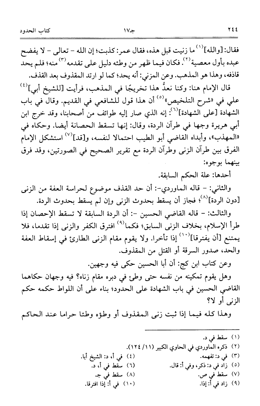 قال الإمام هنا: وكنا نعد هذا تخريجا في المذهب، فرأيت [للشيخ أبي] علي في "شرح التلخيص" أن هذا قول للشافعي في القديم. وقال في باب الشهادة [على الشهادة]: إنه الذي صار إليه طوائف من أصحابنا، وقد خرج ابن أبي هريرة وجها في طرآن الردة، وقال: إنها تسقط الحصانة أيضا. وحكاه في "المهذب"، وأبداه القاضي أبو الطيب احتمالا لنفسه، و [قد] استشكل الإمام الفرق بين طرآن الزنى وطرآن الردة مع تقرير الصحيح في الصورتين، وقد فرق بينهما بوجوه: