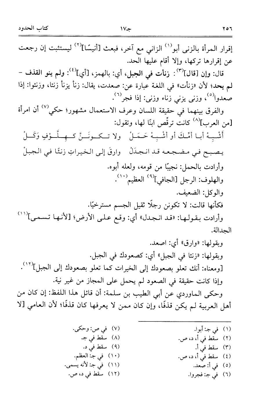 قال: وإن [قال]: زنأت في الجبل، أي: بالهمز، [أي]: ولم ينو القذف - لم يحد؛ لأن "زنأت" في اللغة عبارة عن: صعدت، يقال: زنأ يزنأ زنئا، وزنئوا: إذا صعدوا، وزنى يزني زناء وزنى: إذا فجر.