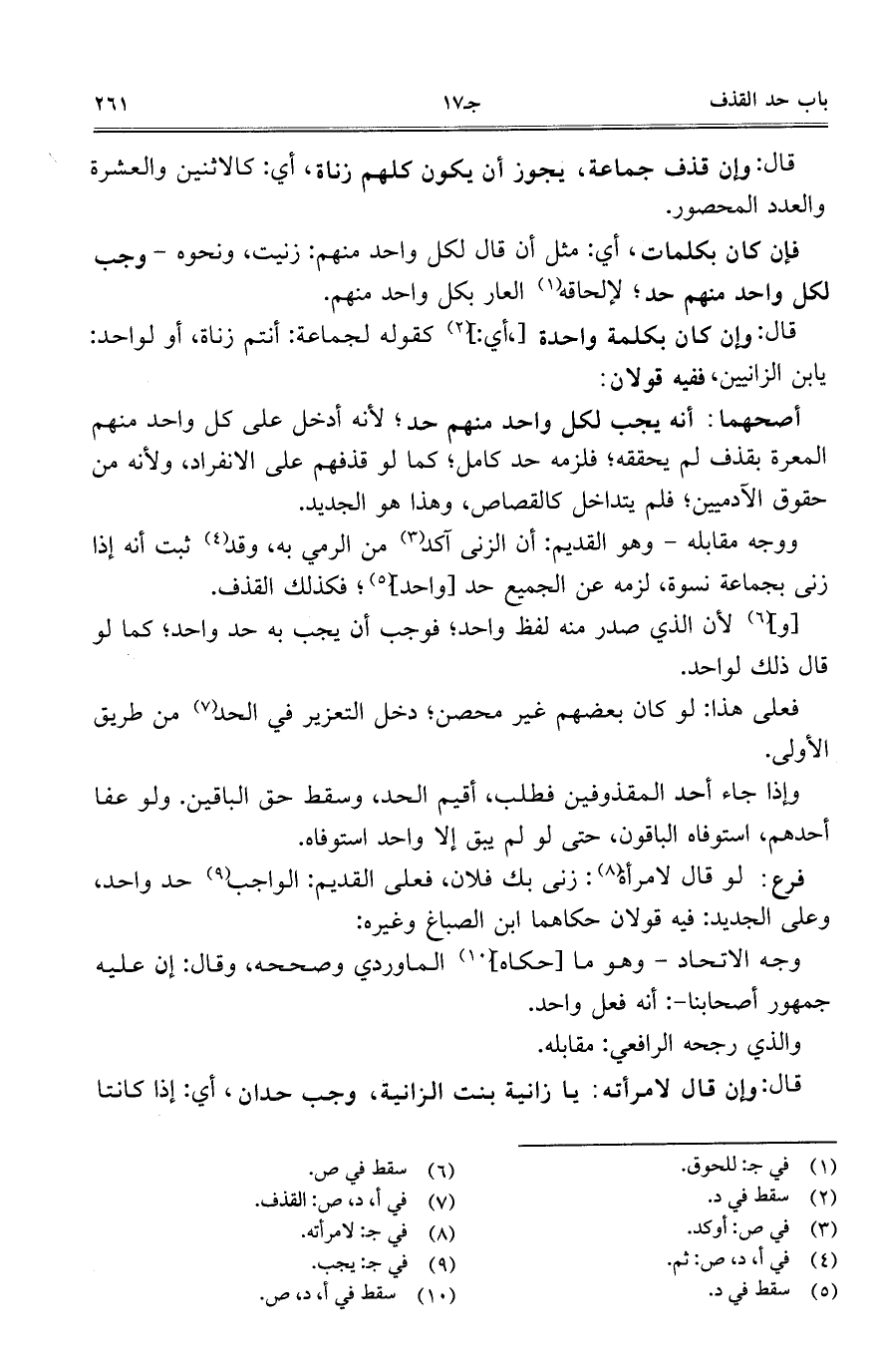 قال: وإن قذف جماعة، يجوز أن يكون كلهم زناة، أي: كالاثنين والعشرة والعدد المحصور.