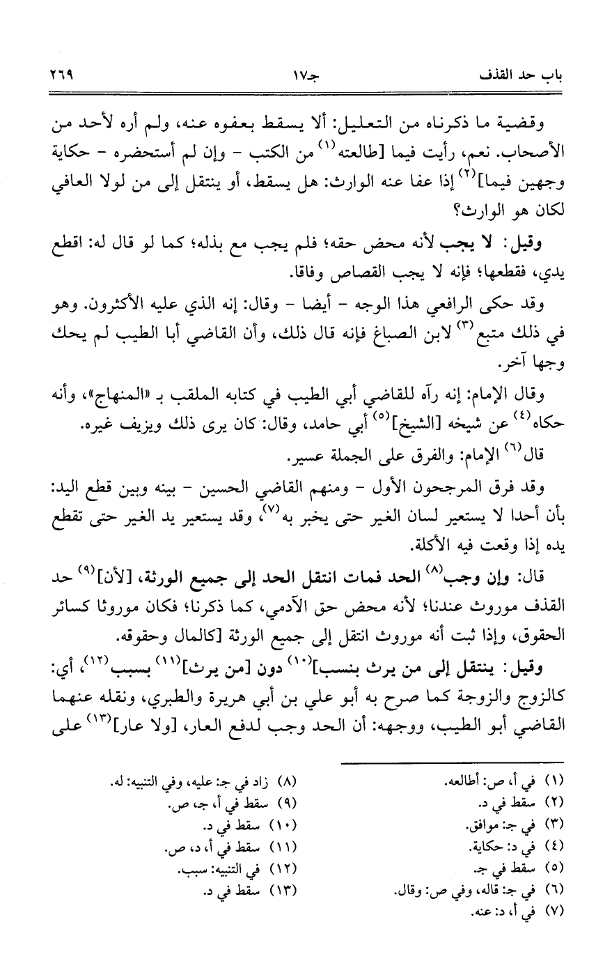 وقضية ما ذكرناه من التعليل: ألا يسقط بعفوه عنه، ولم أره لأحد من الأصحاب. نعم، رأيت فيما [طالعته من الكتب -وإن لم أستحضره- حكاية وجهين فيما] إذ عفا عنه الوارث: هل يسقط، أو ينتقل إلى من لولا العافي لكان هو الوارث؟