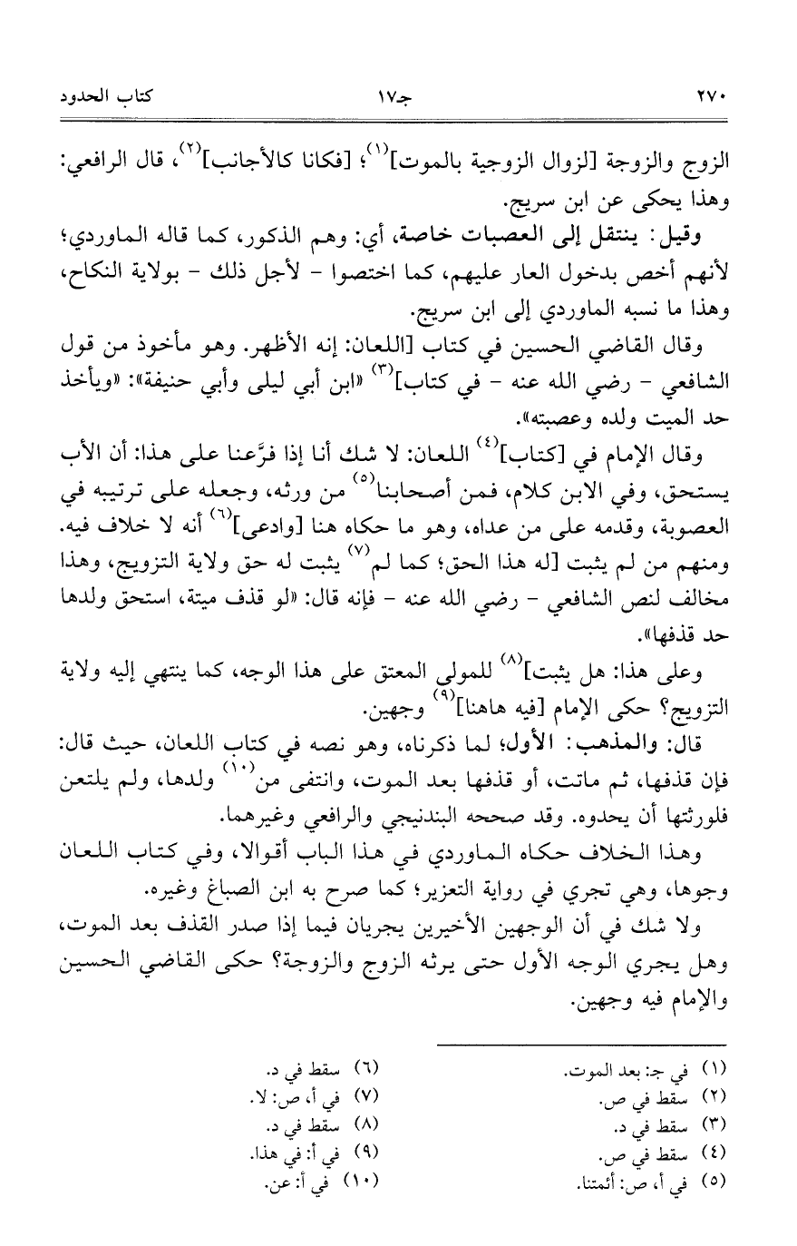 ولا شك في أن الوجهين الأخيرين يجريان فيما إذا صدرا القذف بعد الموت، وهل يجري الوجه الأول حتى يرثه الزوج والزوجة؟ حكى القاضي الحسين والإمام فيه وجهين.
