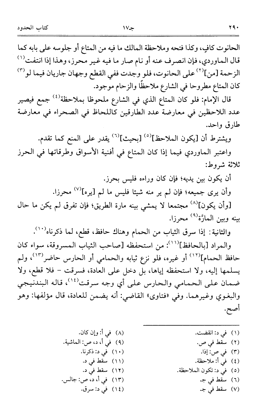 والمراد [بالحافظ]: من استحفظه [صاحب الثياب المسروق، سواء كان حافظ الحمام] أو غيره، فلو نزع ثيابه والحمامي أو الحارس حاضر، ولم يسلمها إليه، ولا استحفظه إياها، بل دخل على العادة، فسرقت – فلا قطع، ولا ضمان على الحمامي والحارس على أي وجه سرقت، قاله البندنيجي والبغوي وغيرهما. وفي "فتاوى" القاضي: أنه يضمن للعادة، قال مؤلفها: وهو أصح.