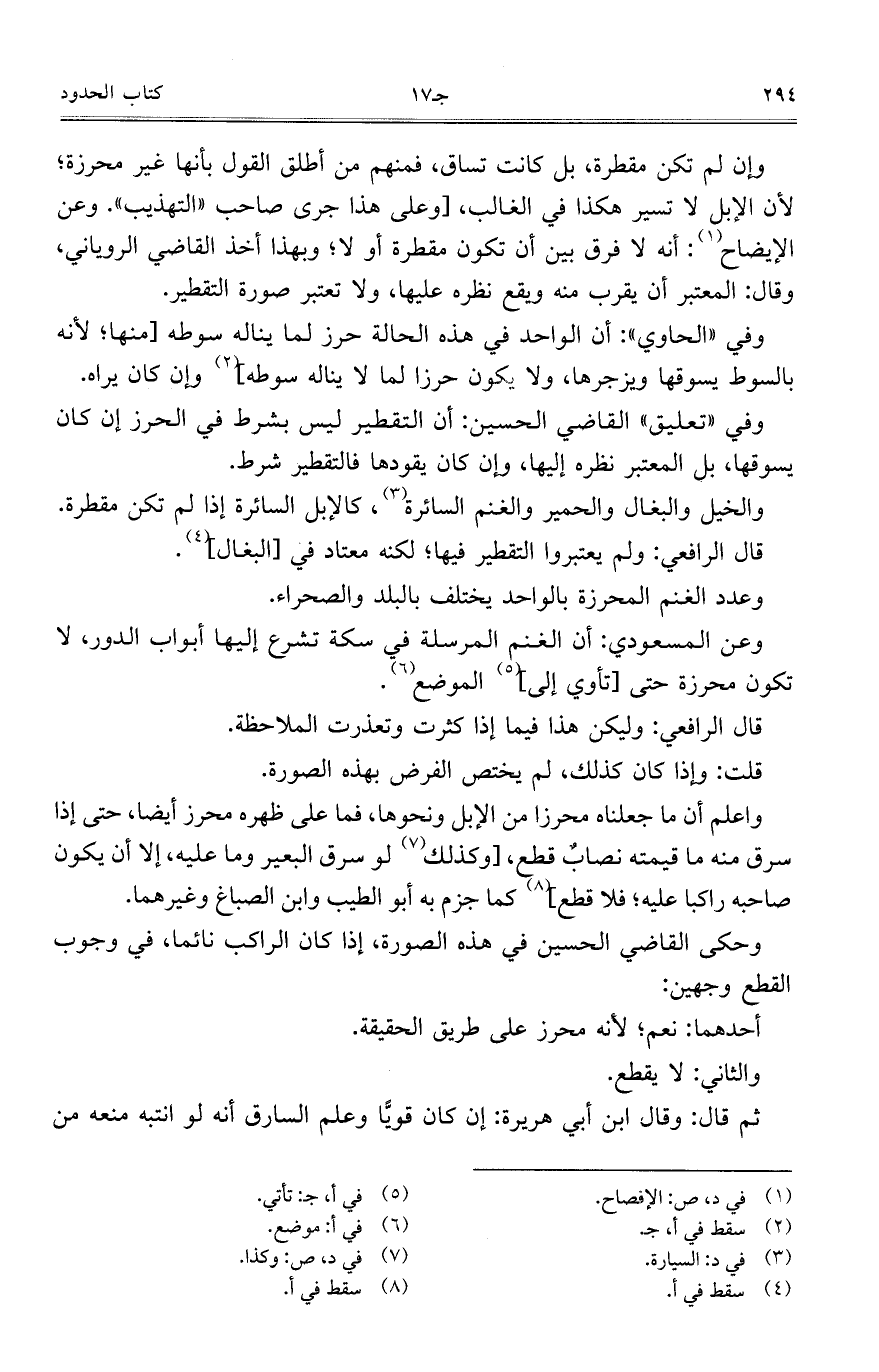 وفي "تعليق" القاضي الحسين: أن التقطير ليس بشرط في الحرز إن كان يسوقها، بل المعتبرة نظره إليها، وإن كان يقودها فالتقطير شرط.