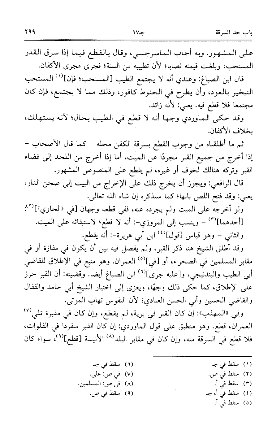 على المشهور. وبه أجاب الماسرجسي، وقال بالقطع فيما إذا سرق القدر المستحب، وبلغت قيمته نصابا؛ لأن تطييبه من السنة؛ فجرى مجرى الأكفان.