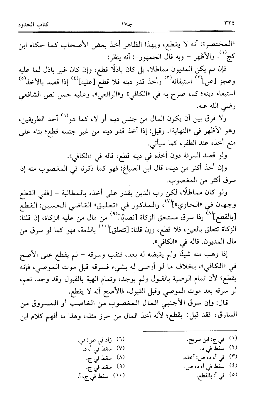 "المختصر": أنه لا يقطع، وبهذا الظاهر أخذ بعض الأصحاب كما حكاه ابن كج. والأظهر – وبه قال الجمهور-: أنه ينظر: