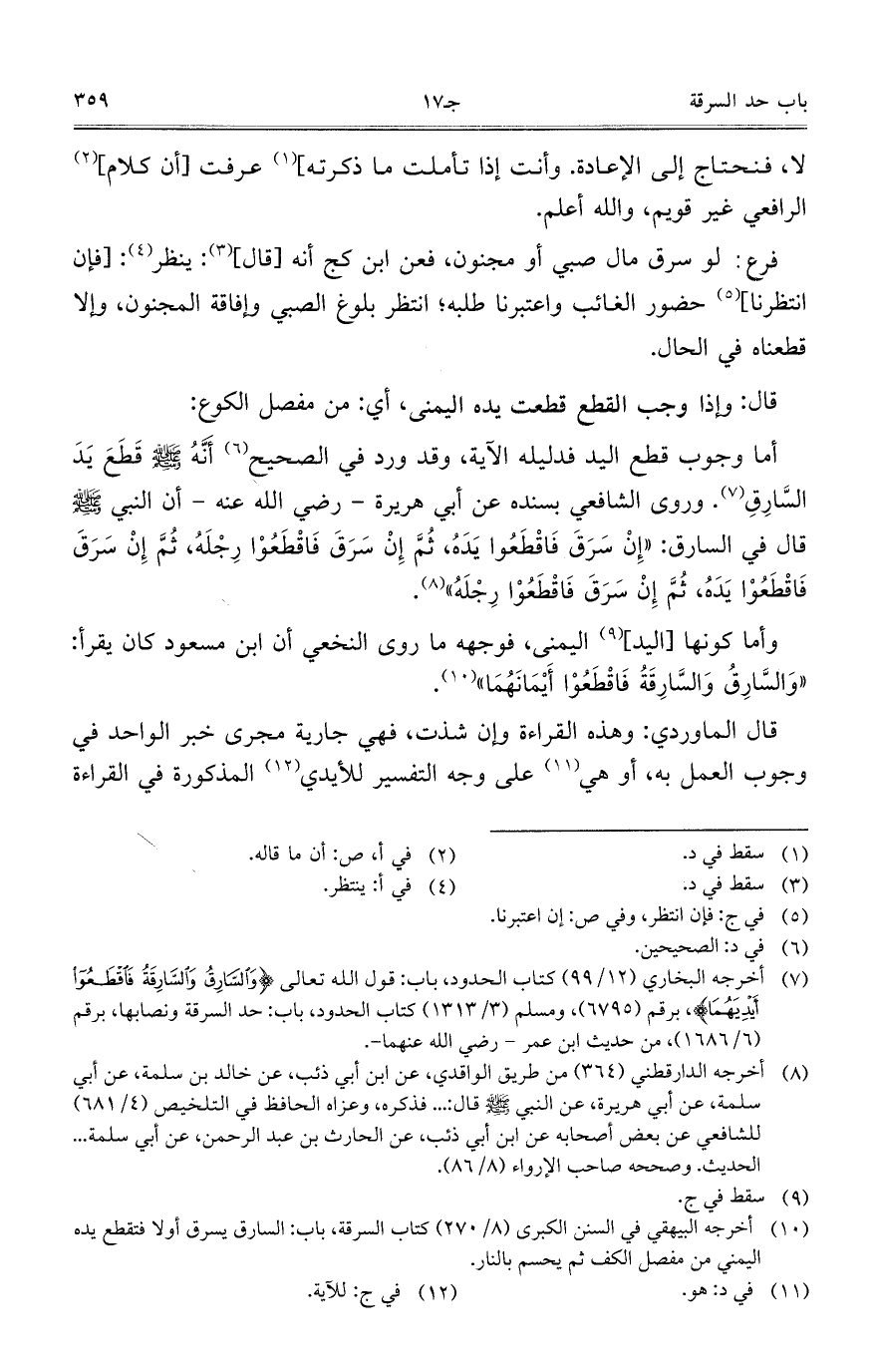 وأما كونها [اليد] اليمنى، فوجهه ما روى النخعي أن ابن مسعود كان يقرأ: "والسارق والسارقة فاقطعوا أيمانهما".