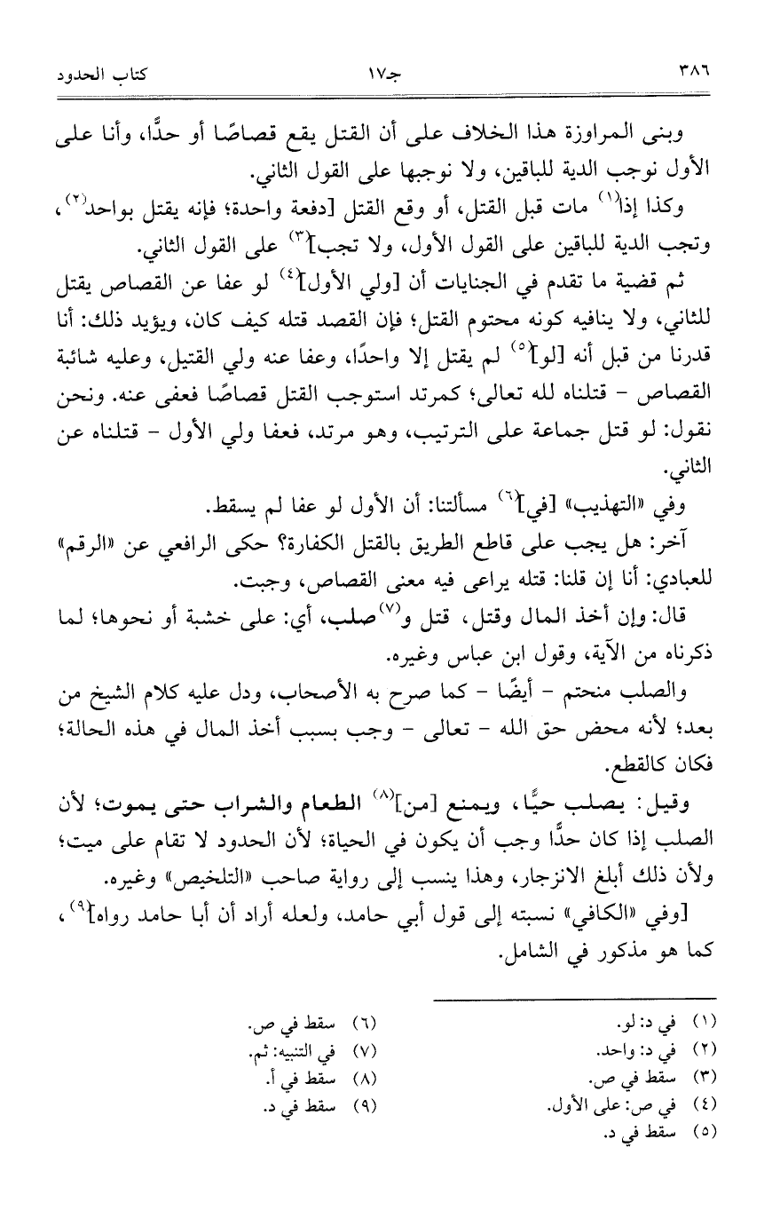 وبنى المراوزة هذا الخلاف على أن القتل يقع قصاصا أو حدا، وأنا على الأول نوجب الدية للباقين، ولا نوجبها على القول الثاني.