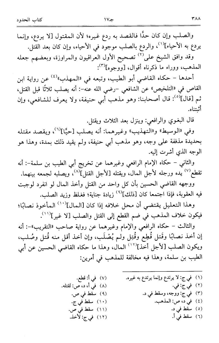 وهذا التعليل يقتضي أن محل خلافه إذا كان [المال] المأخوذ نصابا؛ فيكون خلاف المذهب في ضم القطع إلى القتل والصلب [لا غير].