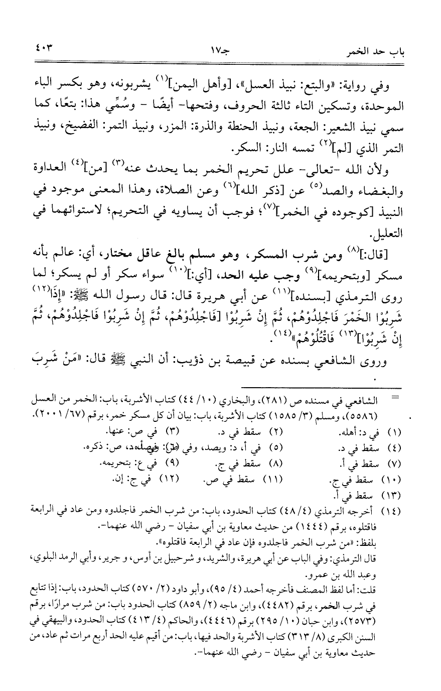 وروى الشافعي بسنده عن قبيصة بن ذؤيب: أن النبي صلى الله عليه وسلم قال:" من شرب