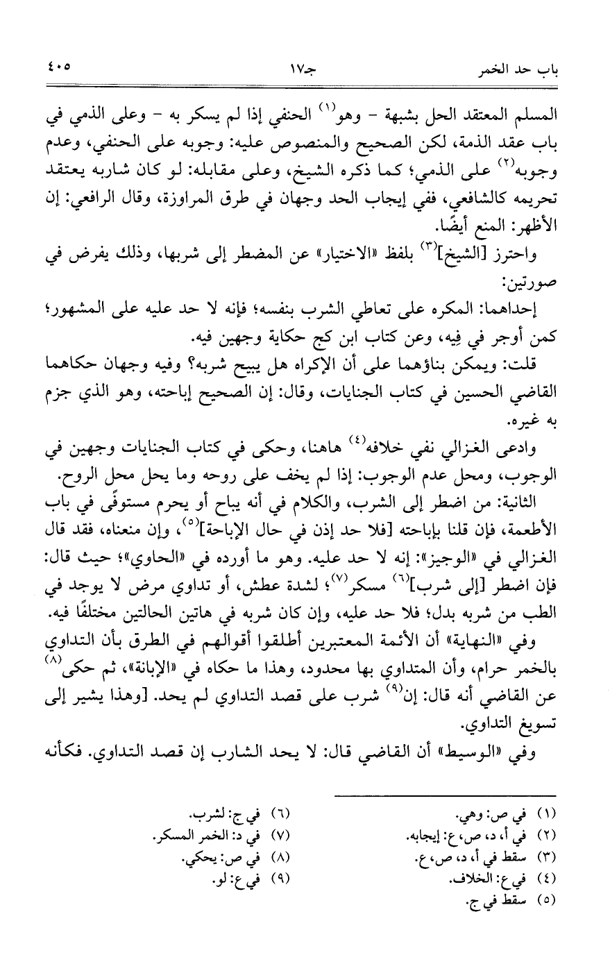 واحترز [الشيخ] بلفظ "الاختيار" عن المضطر إلى شربها، وذلك يفرض في صورتين: