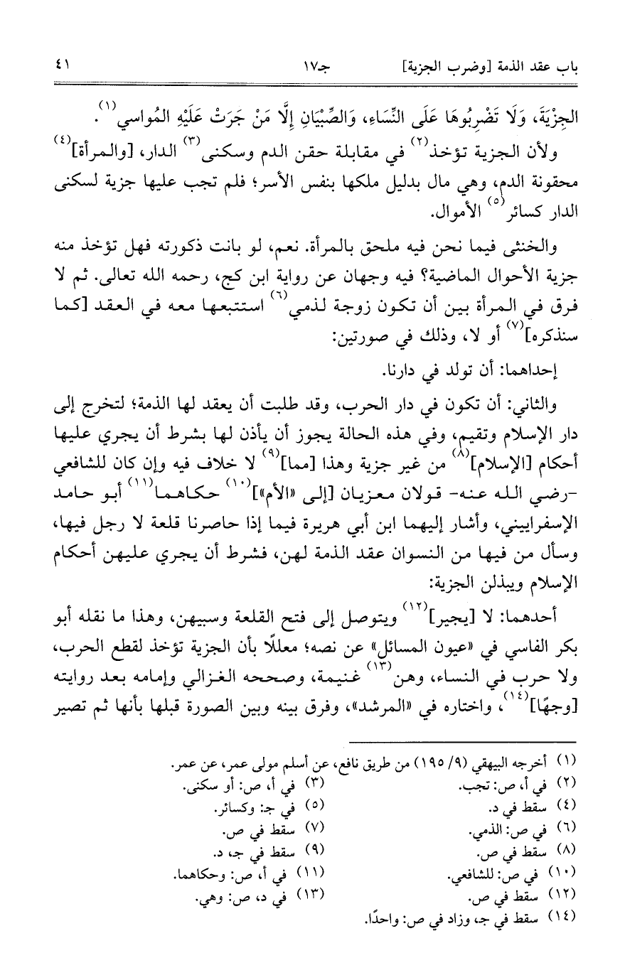 والخنثى فيما نحن فيه ملحق بالمرأة. نعم، لو بانت ذكورته فهل تؤخذ منه جزية الأحوال الماضية؟ فيه وجهان عن رواية ابن كج، رحمه الله تعالى. ثم لا فرق في المرأة بين أن تكون زوجة لذمي استتبعها معه في العقد [كما سنذكره] أو لا، وذلك في صورتين:
