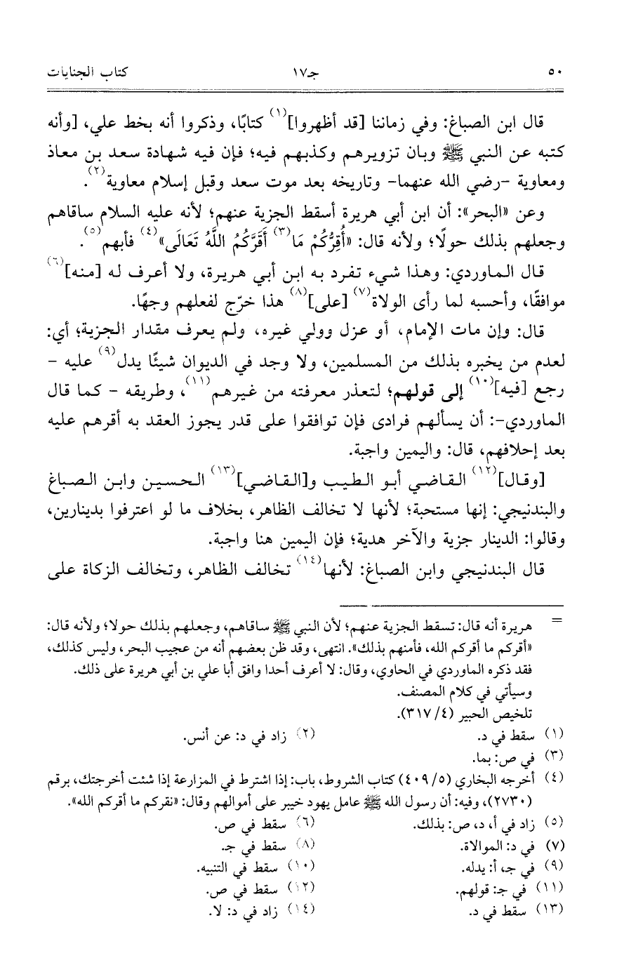 قال ابن الصباغ: وفي زماننا [قد أظهروا] كتابا، وذكروا أنه بخط علي، [وأنه كتبه عن النبي صلى الله عليه وسلم وبأن تزويدهم وكذبهم فيه؛ فإن فيه شهادة سعد بن معاذ ومعاوية – رضي الله عنهما – وتاريخه بعد موت سع وقبل إسلام معاوية.