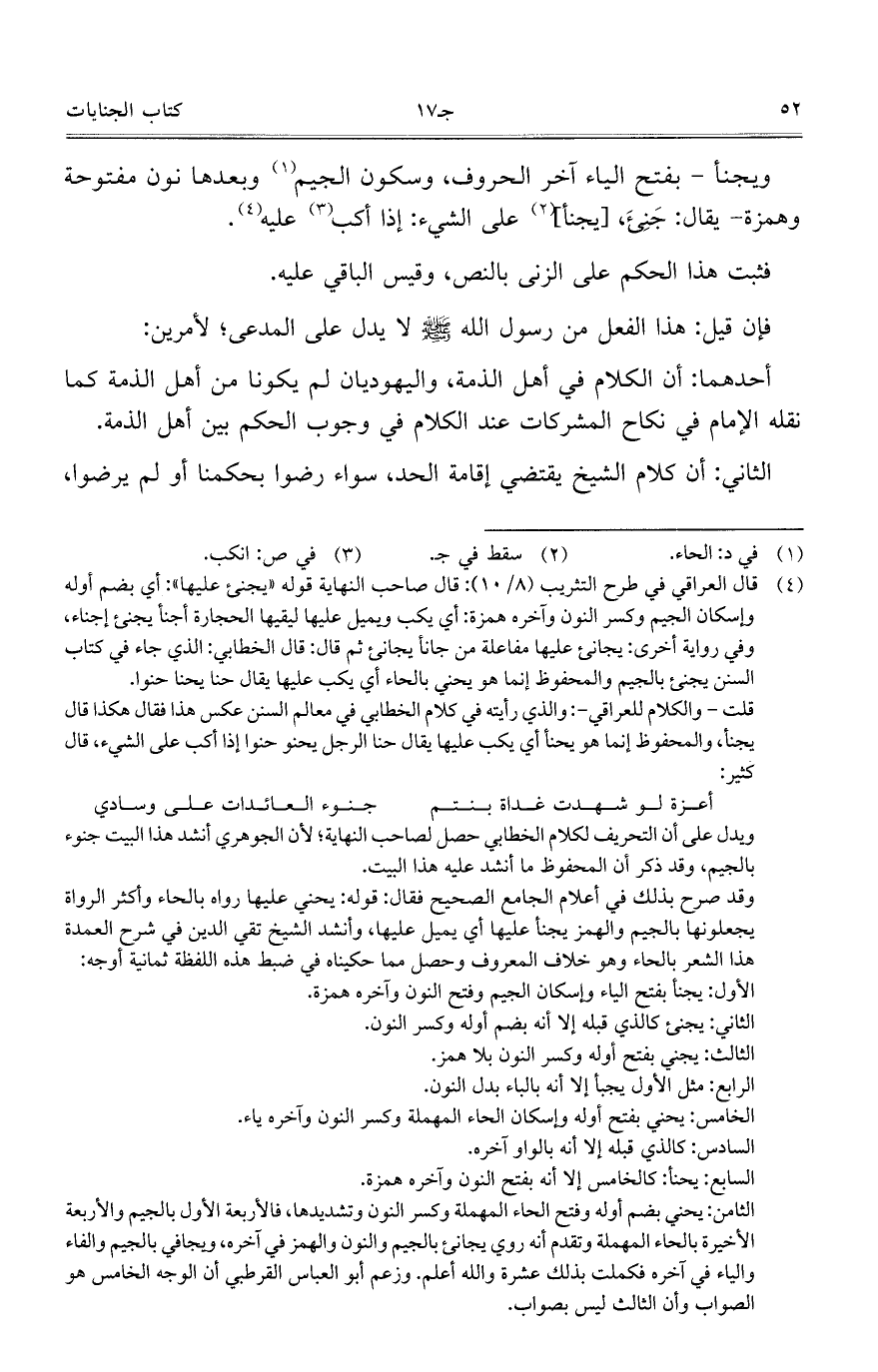 ويجنأ – بفتح الياء آخر الحروف، وسكون الجيم وبعدها نون مفتوحة وهمزة – يقال: جنئ، [يجنأ] على الشيء: إذا أكب عليه.