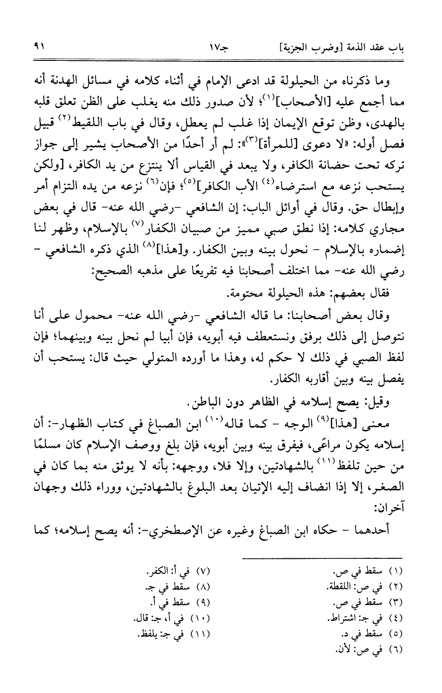 وما ذكرناه من الحيلولة قد ادعى الإمام في أثناء كلامه في مسائل الهدنة أنه مما أجمع عليه [الأصحاب]؛ لأن صدور ذلك منه يغلب على الظن تعلق قلبه بالهدى، وظن توقع الإيمان إذا غلب لم يعطل، وقال في باب اللقيط قبيل فصل أوله: "لا دعوى [للمرأة] ": لم أر أحدا من الأصحاب يشير إلى جواز تركة تحت حضانة الكافر، ولا يبعد في القياس ألا ينتزع من يد الكافر، [ولكن يستحب نزعه مع استرضاء الأب الكافر]؛ فإن نزعه من يده التزام أمر وإبطال حق. وقال في أوائل الباب: إن الشافعي – رضي الله عنه – قال في بعض مجاري كلامه: إذا نطق صبي مميز من صبيان الكفار بالإسلام، وظهر لنا إضماره بالإسلام – نحول بينه وبين الكفار. و [هذا] الذي ذكره الشافعي – رضي الله عنه – مما اختلف أصحابنا فيه تفريغا على مذهبه الصحيح:
