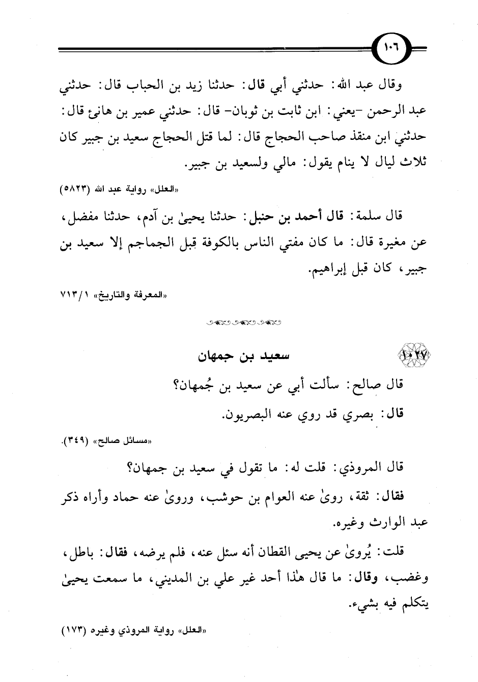 قال المروذي: قلت له: ما تقول في سعيد بن جمهان؟