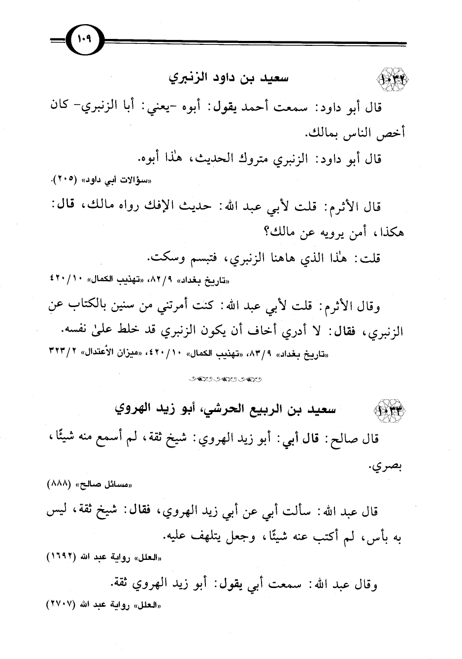 "تاريخ بغداد" 9/ 82، "تهذيب الكمال" 10/ 420