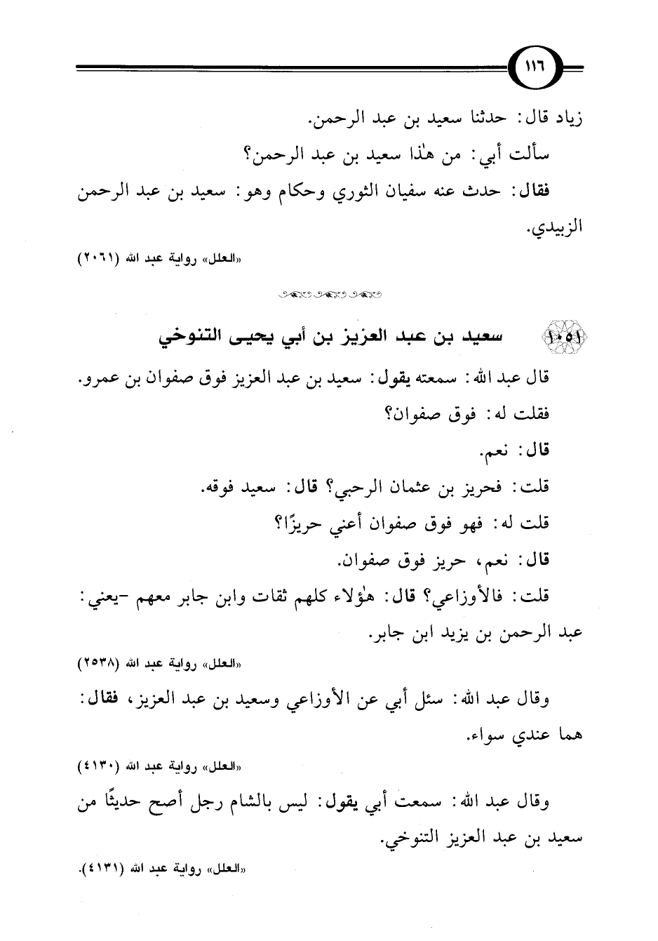 سألت أبي: من هذا سعيد بن عبد الرحمن؟
