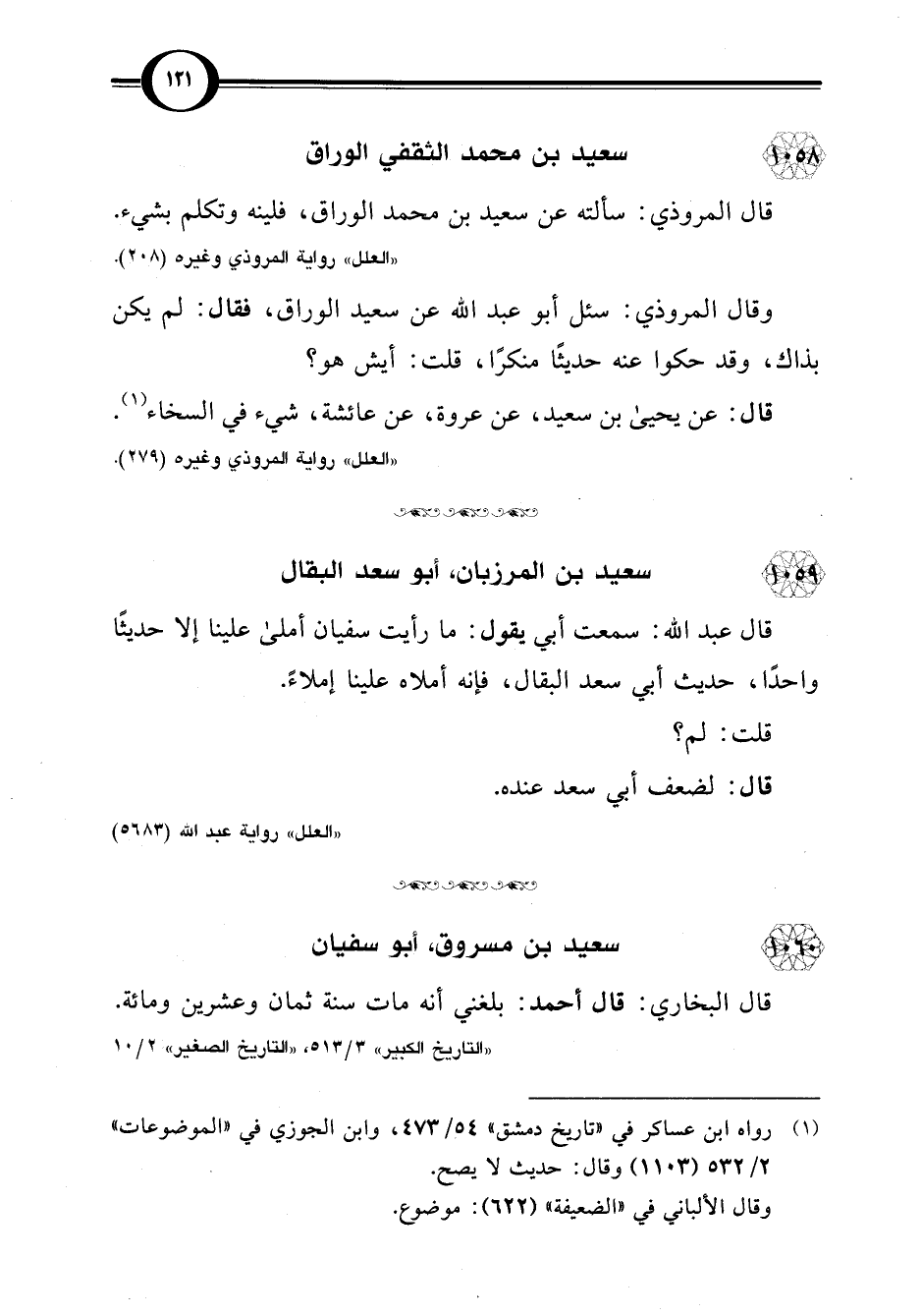 قال المروذي: سألته عن سعيد بن محمد الوراق، فلينه وتكلم بشيء.