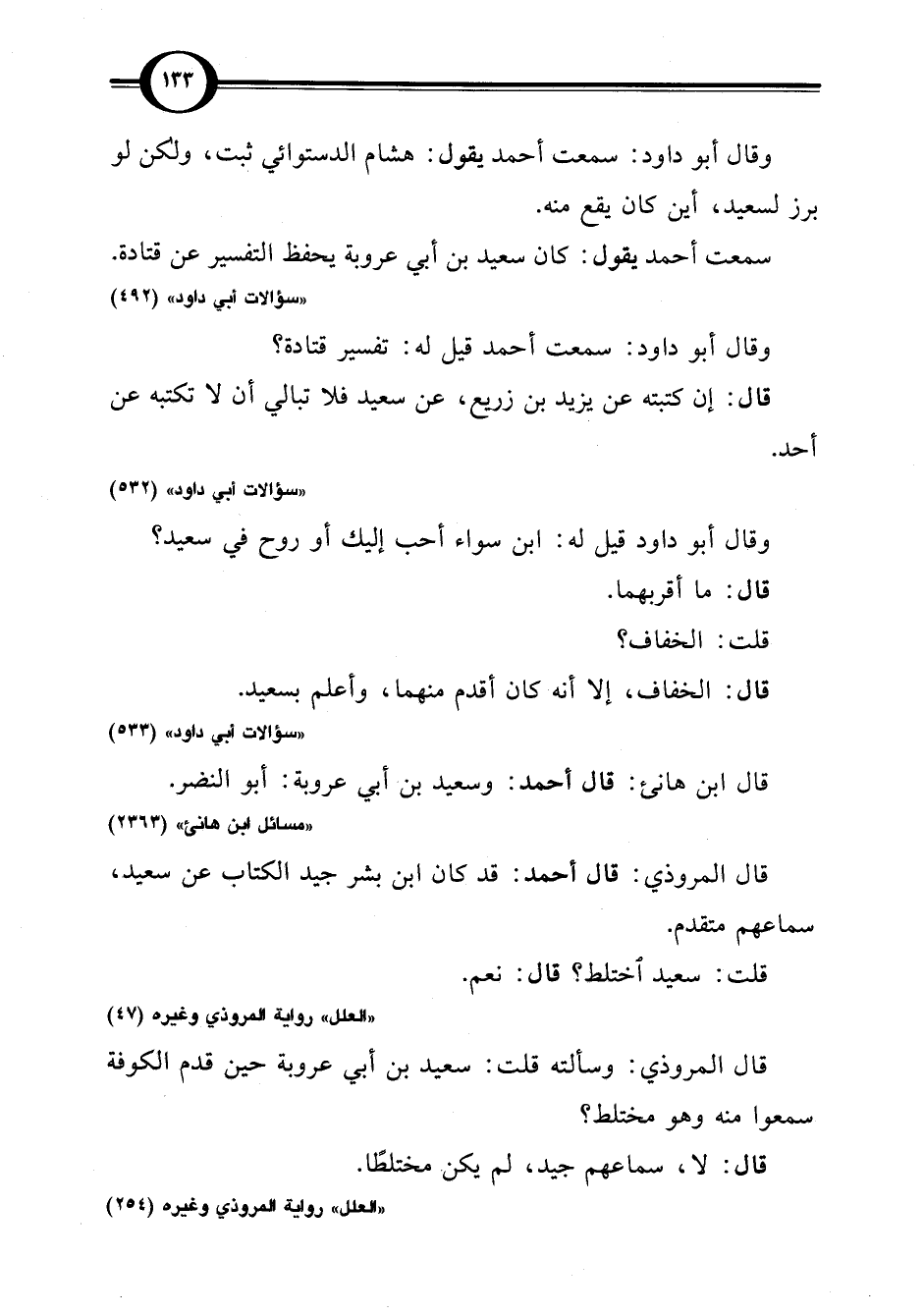 قال ابن هانئ: قال أحمد: وسعيد بن أبي عروبة: أبو النضر.