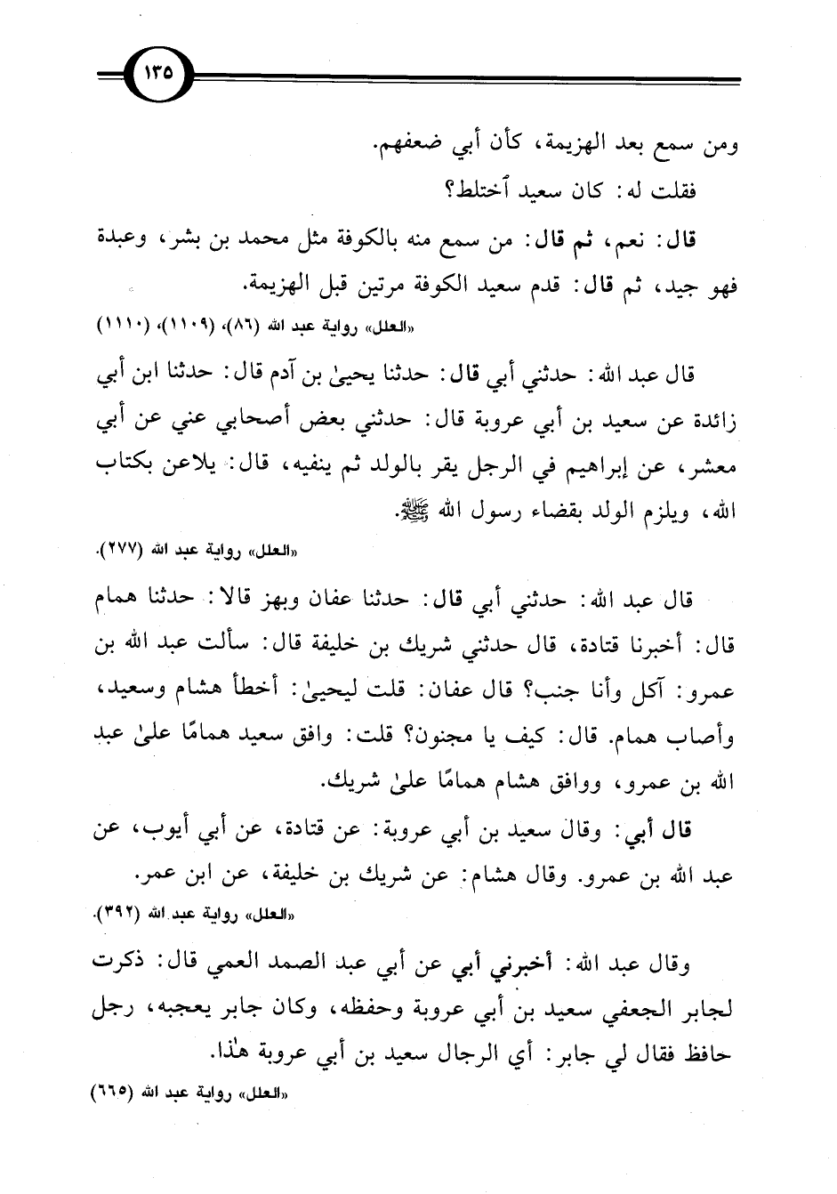 "العلل" رواية عبد اللَّه (86)، (1109)، (1110)
