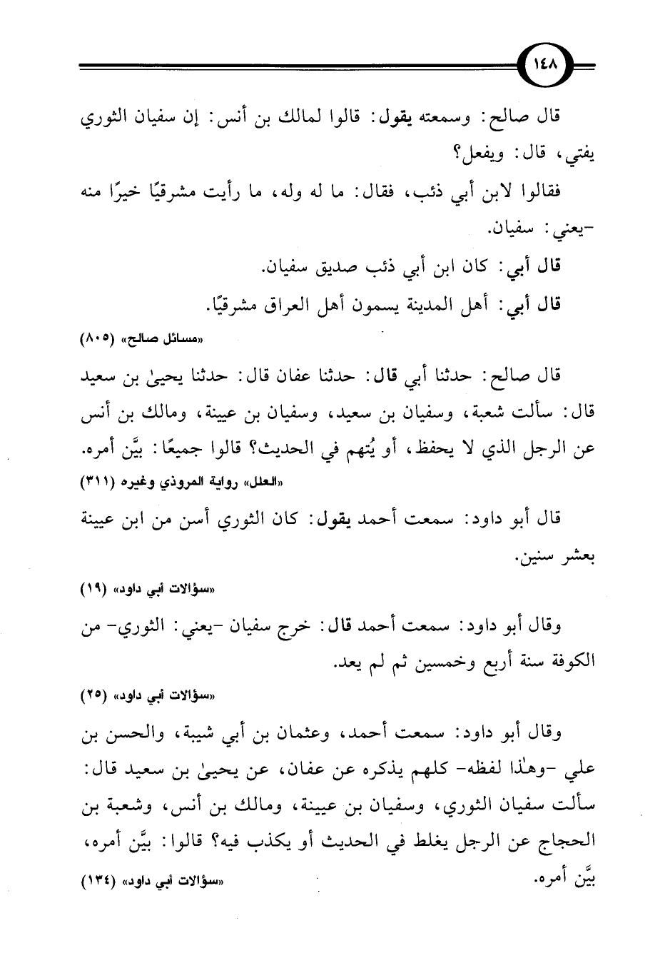 قال أبو داود: سمعت أحمد يقول: كان الثوري أسن من ابن عيينة بعشر سنين.