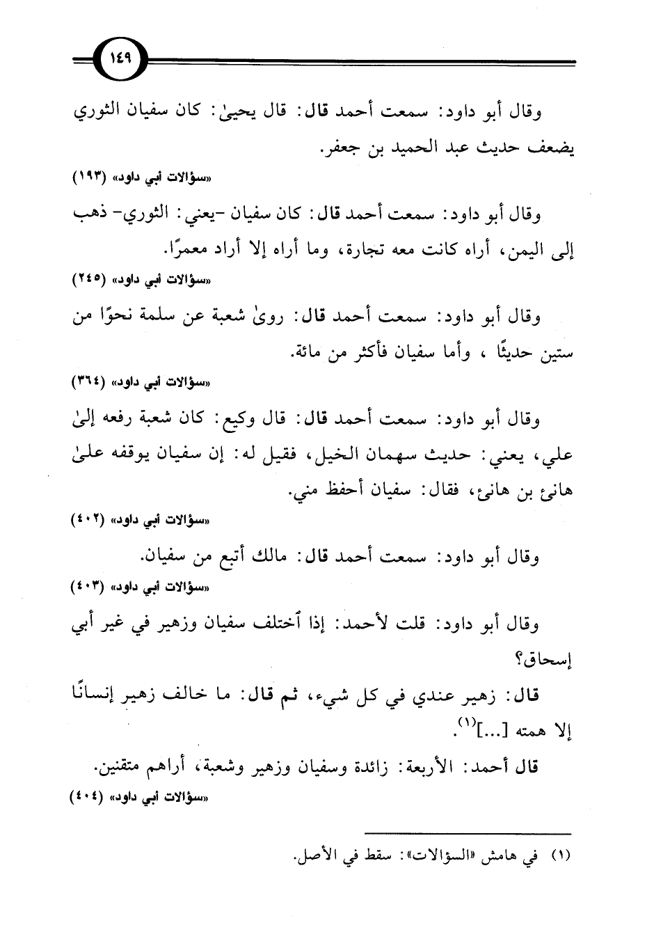 وقال أبو داود: قلت لأحمد: إذا اختلف سفيان وزهير في غير أبي إسحاق؟