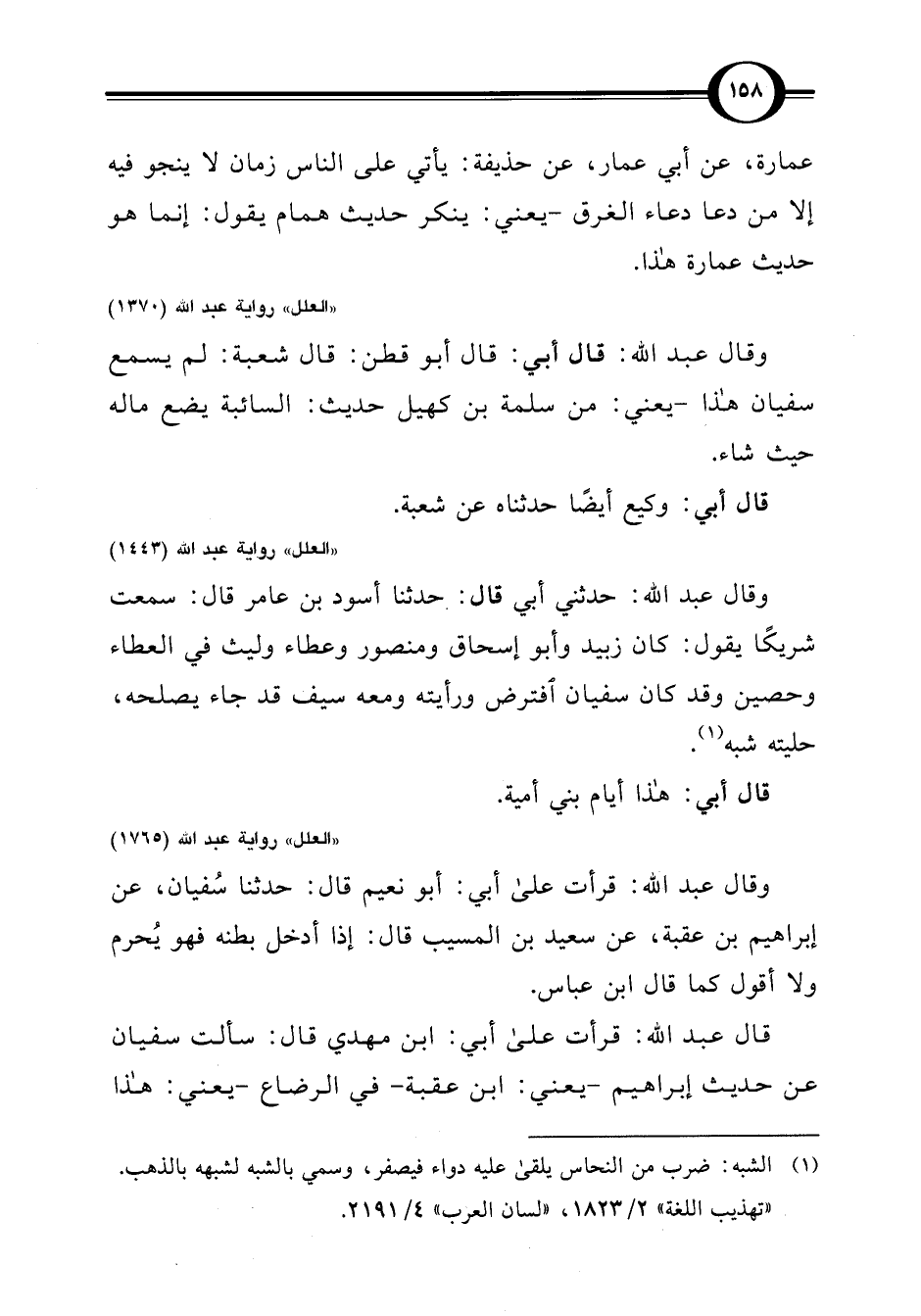 "العلل" رواية عبد اللَّه (1765)
