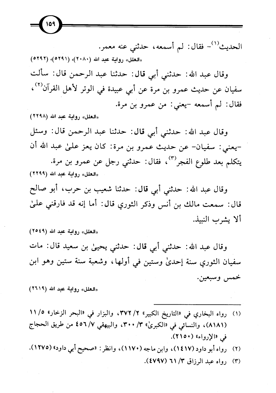 "العلل" رواية عبد اللَّه (2080)، (5291)، (5292)