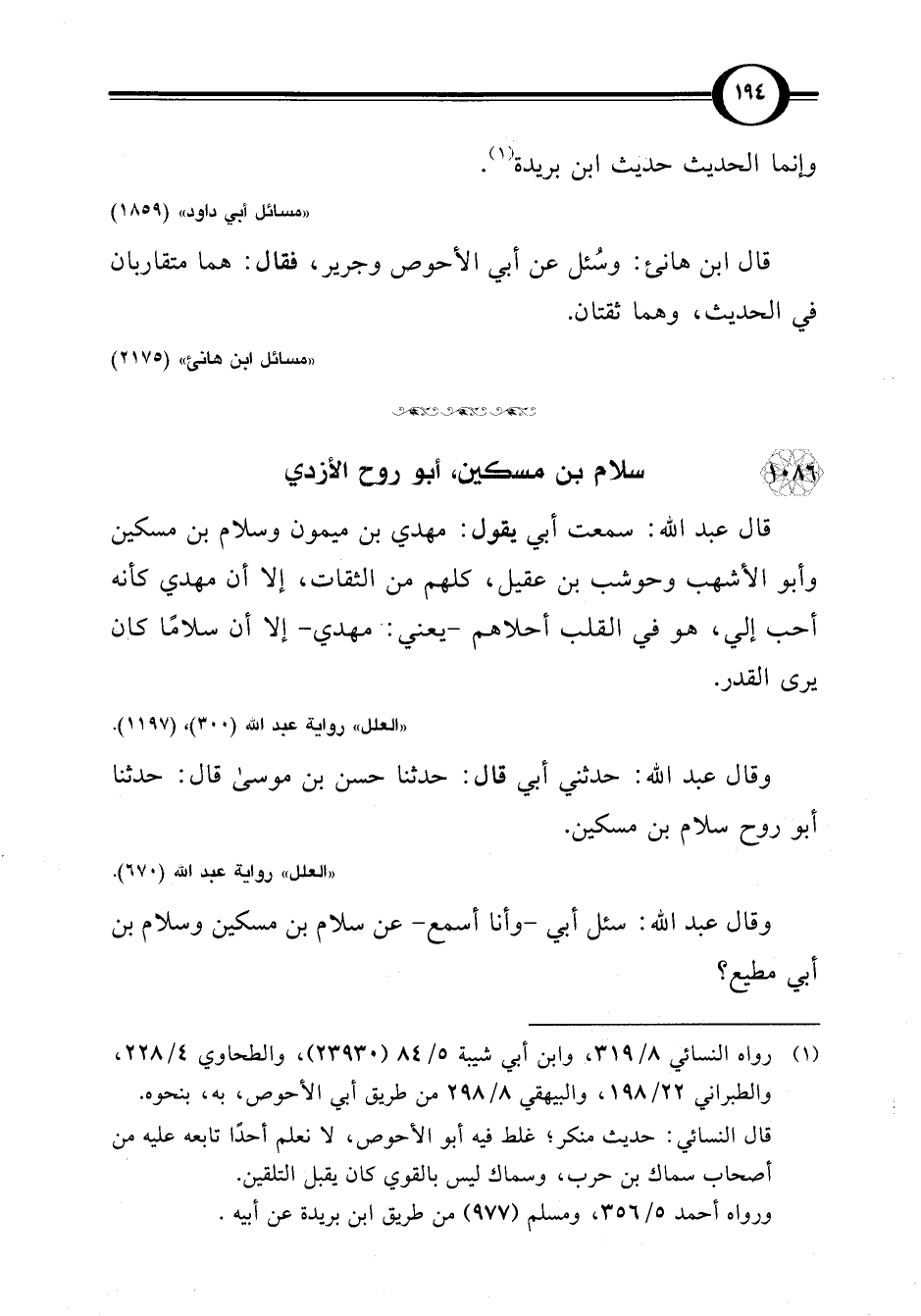 "العلل" رواية عبد اللَّه (300)، (1197).