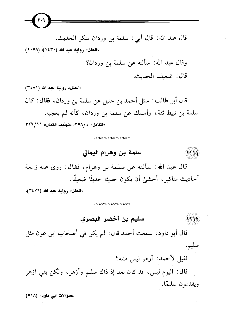 وقال عبد اللَّه: سألته عن سلمة بن وردان؟