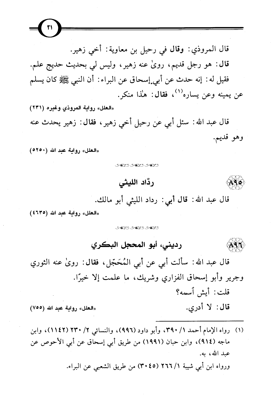 قال المروذي: وقال في رحيل بن معاوية: أخي زهير.