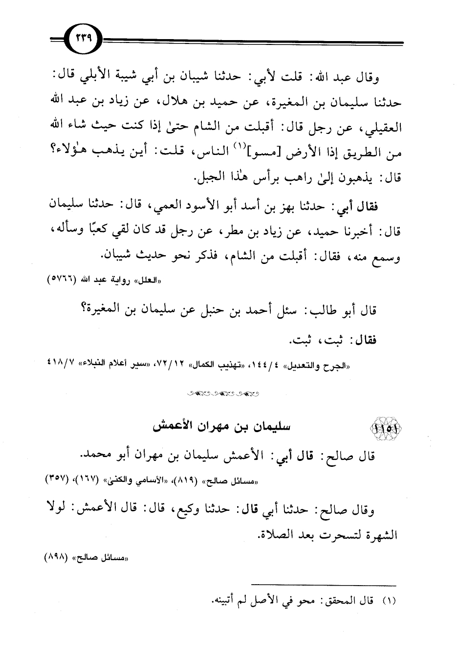 "مسائل صالح" (819)، "الأسامي والكنى" (167)، (357)