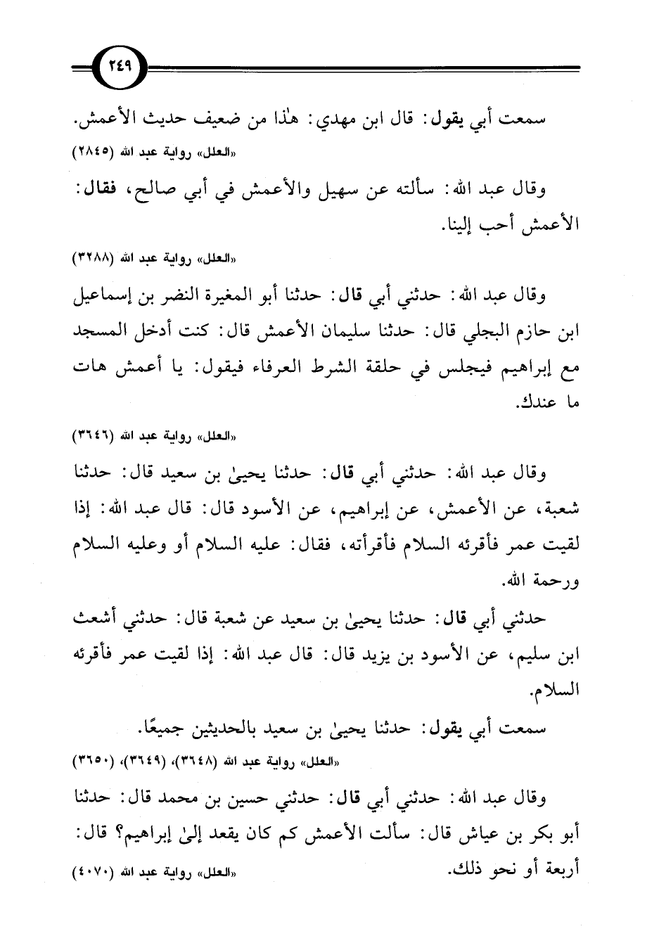 "العلل" رواية عبد اللَّه (3648)، (3649)، (3650)
