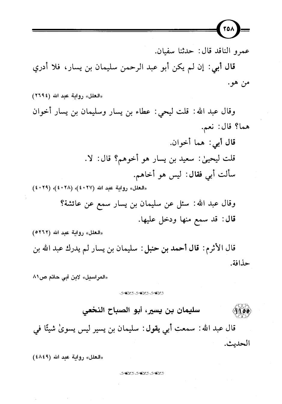 قال أبي: إن لم يكن أبو عبد الرحمن سليمان بن يسار، فلا أدري من هو.