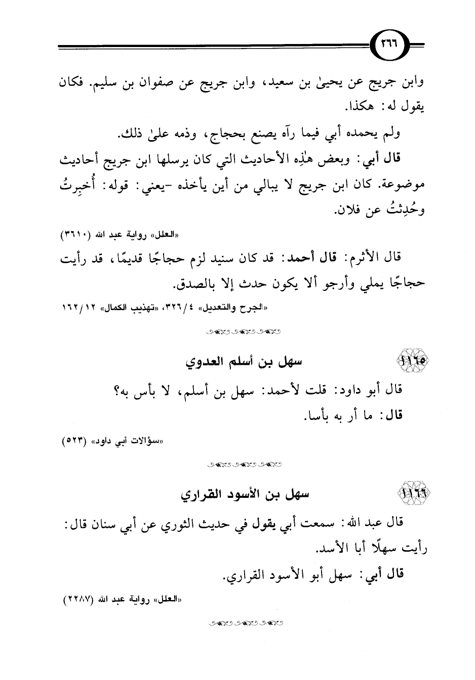 قال عبد اللَّه: سمعت أبي يقول في حديث الثوري عن أبي سنان قال: رأيت سهلًا أبا الأسد.