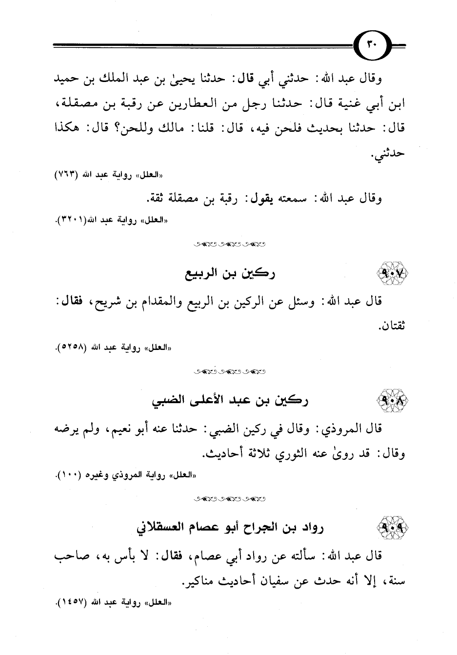 قال عبد اللَّه: وسئل عن الركين بن الربيع والمقدام بن شريح، فقال: ثقتان.
