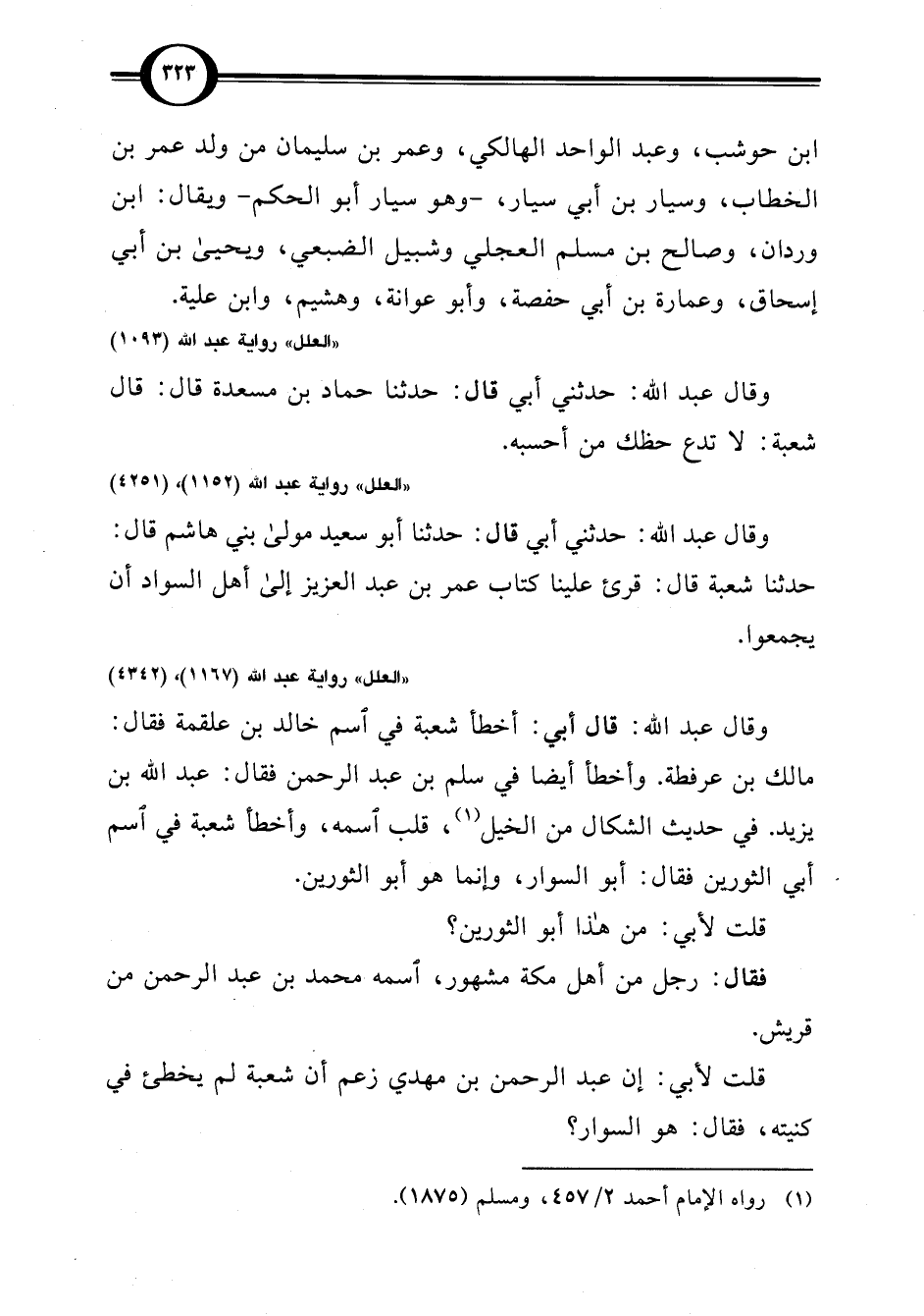 "العلل" رواية عبد اللَّه (1167)، (4342)