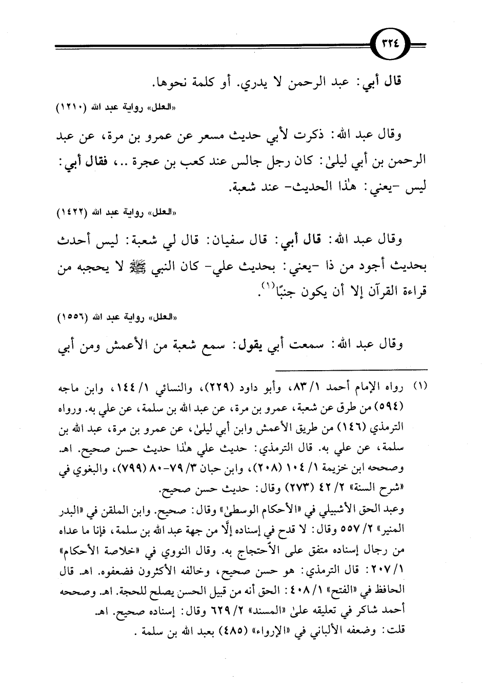 "العلل" رواية عبد اللَّه (1210)