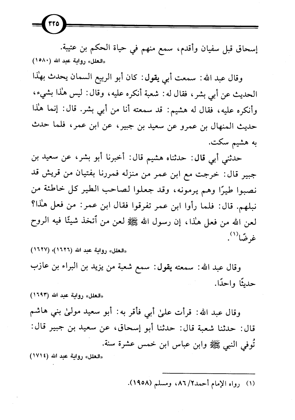 "العلل" رواية عبد اللَّه (1626)، (1627)
