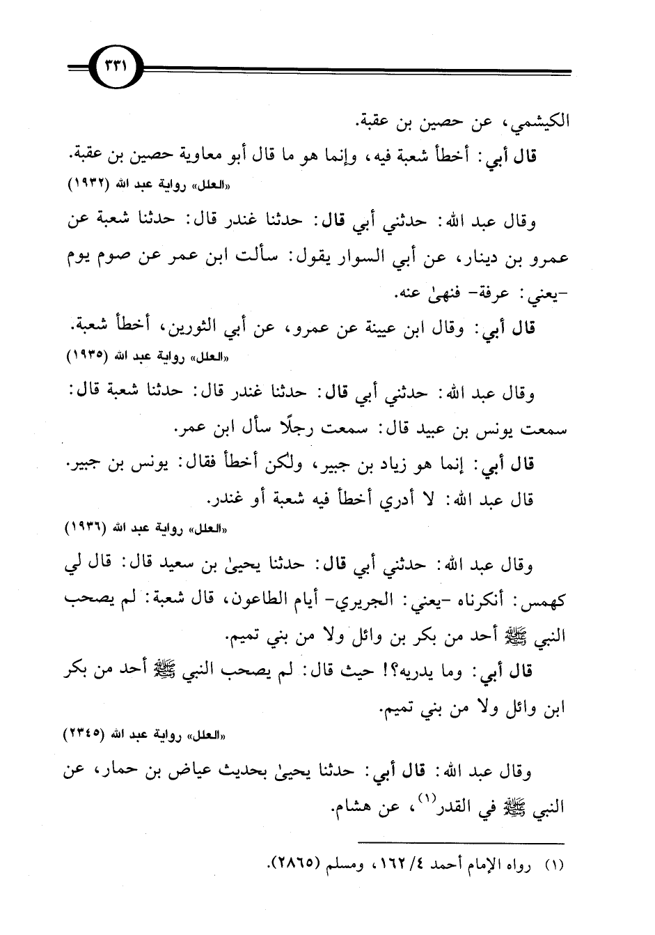 "العلل" رواية عبد اللَّه (1932)