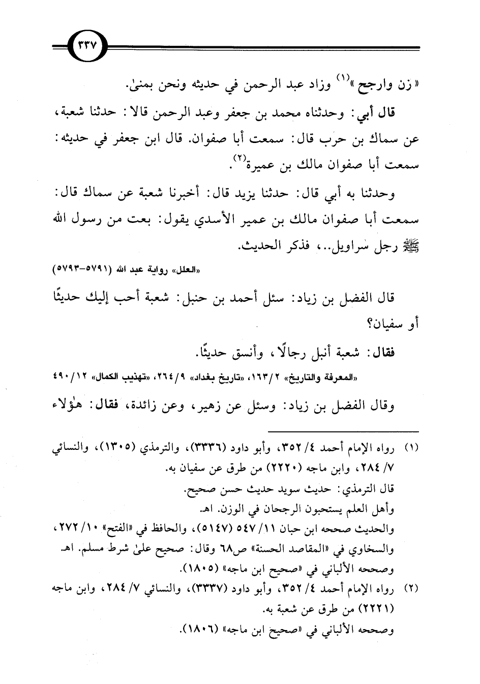 "العلل" رواية عبد اللَّه (5791 - 5793)